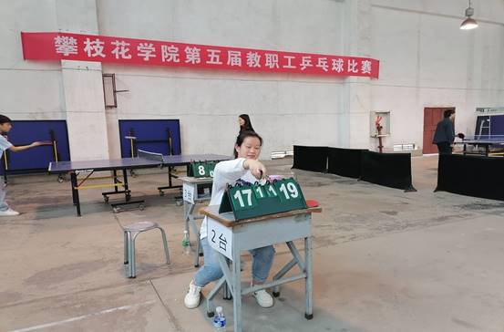 3月21日,由校工会主办、攀枝花学院教工乒乓球协会承办的攀枝花学院第五届教职工教工乒乓比赛在校本部乒乓球馆举行。来自全校各个工会小组的70余位选手参加了比赛。