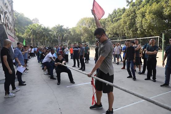 当比赛开拔的哨声响起,只见参赛队员们个个紧拽长绳、双足蹬地、重心后倒、双眼圆瞪、腮帮外鼓、青筋绽露,使出浑身解数往身后拔拉!棋逢对手的场次更是出现多次反复拉锯、长时间对峙,啦啦队员的加油助威声更是此起彼伏、声浪一浪高过一浪,催涨了队员的热情,使比赛显得更加激烈精彩。
