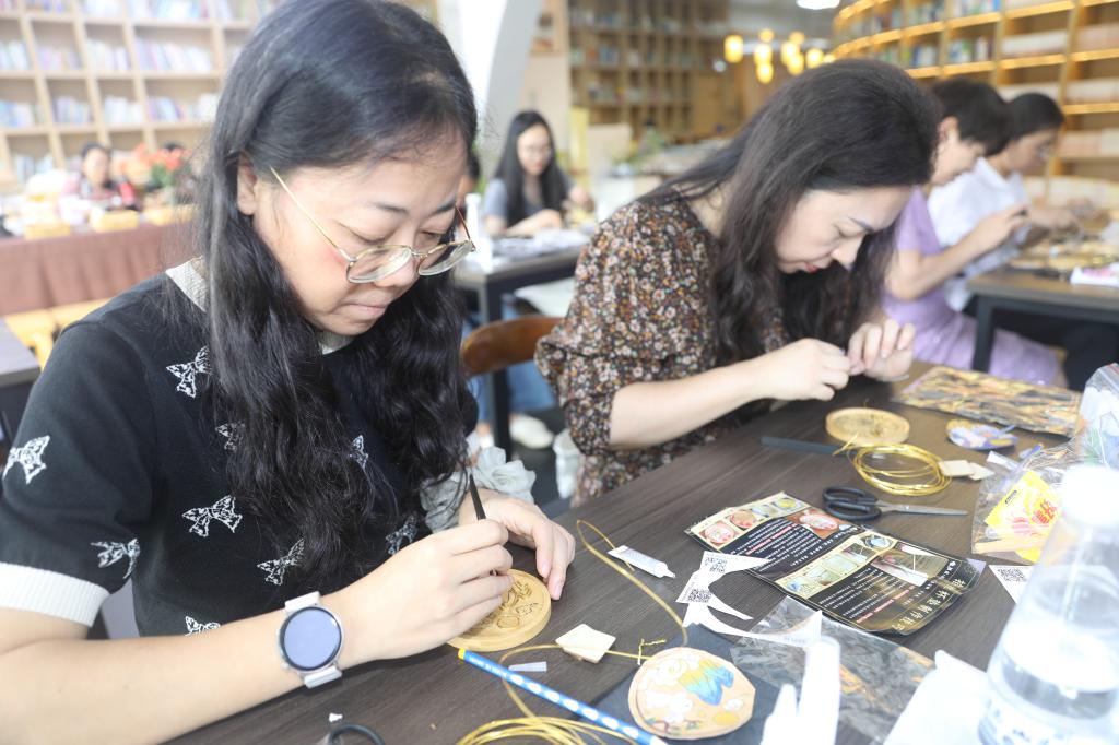 心理健康互动活动结束后,非遗掐丝珐琅工艺体验环节精彩登场。作为中华传统非遗技艺的重要代表,掐丝珐琅以其细腻的工艺、绚丽的色彩承载着深厚的文化底蕴。现场,教职工们在专业老师指导下,近距离感受传统技艺的独特魅力——从勾勒线条到填充色彩,每一个步骤都细致入微。大家专注地摆弄着手中的材料,将对传统文化的热爱与对中秋的美好期盼融入作品之中,一件件充满创意的掐丝珐琅文创作品逐渐成型,不仅让教职工们亲身实践了非遗技艺,更在创作过程中体会到了文化传承的意义与匠心精神的可贵。