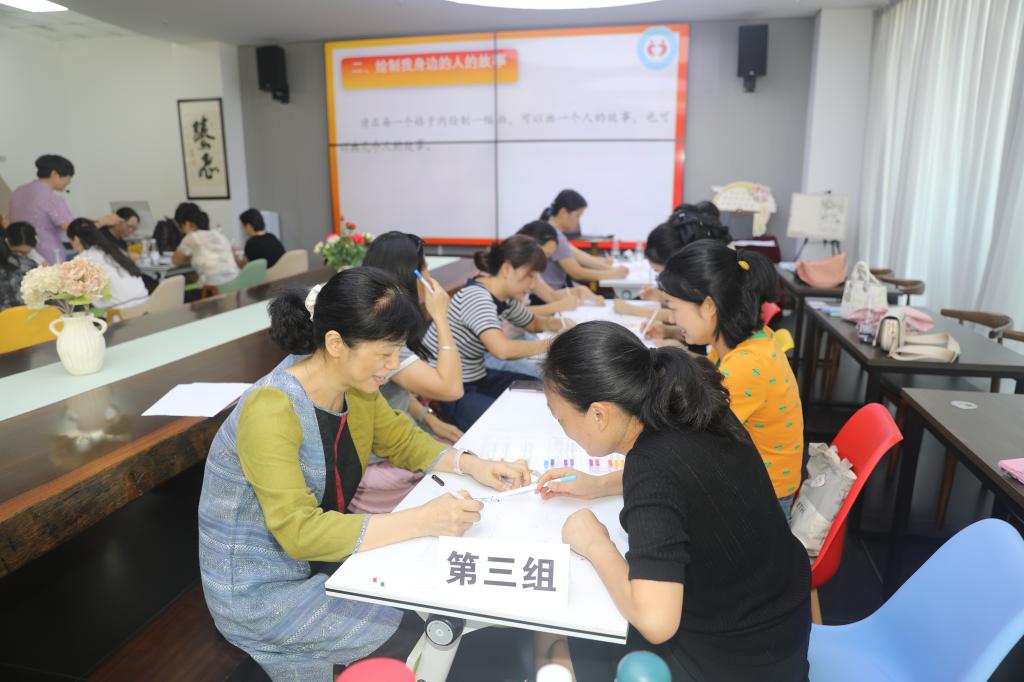 活动以轻松暖心的心理健康互动环节拉开帷幕。结合中秋“团圆和睦”的节日寓意,以“绘制身边人的故事”为核心,教职工们每人领取一张印有六宫格的A4纸,在每个格子中描绘与身边同事、朋友相关的生活片段与情感瞬间。绘画完成后,大家以小组为单位展开分享交流,3-4人组成小组相互认识,依次分享三幅最具代表性的作品:讲述画作背后的人际故事、表达对组内其他教职工故事的感悟,以及分享参与活动的收获。